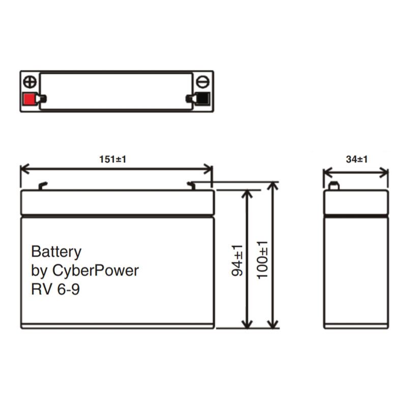 **Аккумулятор CyberPower RV 6-9 (6V / 9Ah)**Стационарный аккумулятор CyberPower RV 6-9 с напряжением 6 В и ёмкостью 9 Ач отлично подходит для использования в источниках бесперебойного питания, телекоммуникациях и приборостроении. Корпус изделия выполнен из долговечного ABS пластика и полностью герметичен, что полностью исключает возможность протекания электролита. Срок службы RV 6-9 составляет 8 лет, на протяжении которых доливать воду не требуется (необслуживаемый). Благодаря применению технологии AGM жидкий электролит удерживается неподвижно стекловолоконными сепараторами, это позволяет газам рекомбинировать внутри батареи. Более подробную информацию можно получить в разделе «Документы». Дата производства аккумулятора CyberPower RV 6-9 указана на крышке в виде символьного кода. Технические характеристики АКБ CyberPower RV 6-9 Номинальное напряжение 6 В Число элементов 3 Максимальный разрядный ток (25 °С) 135 А (5 с) Внутреннее сопротивление полностью заряженной батареи (25 °С) 9.5 мОм Саморазряд (при 20 °С) 3% в месяц Срок службы в буферном режиме 8 лет Номинальная емкость (25 °С) 20 часовой разряд (- А, 1,75 В/эл.) 16.4 Ач 10 часовой разряд (- А, 1,75 В/эл.) 9 Ач 5 часовой разряд (- А, - В/эл.) - Ач Циклический режим (- В) Максимальный зарядный ток 2.4 А Температурная компенсация - мВ/°С Буферный режим (- В) Температурная компенсация - мВ/°С Диапазон рабочих температур Оптимальная рабочая температура 20–25 °С Разряд -15 °С ~ 50 °С Заряд 0 °С ~ 40 °С Хранение -15 °С ~ 40 °С Конструкция аккумулятора CyberPower RV 6-9 Компонент Материал Положительная пластина Диоксид свинца Отрицательная пластина Свинец Корпус и крышка Синтетическая смола ABS Клапан предохранительный Каучук Клеммы Медь Сепаратор Стекловолокно Электролит Серная кислота Особенности аккумулятора CyberPower RV 6-9 Герметизированная конструкция Система внутренней рекомбинации газов с эффективностью 99% Дополнительное обслуживание (долив воды) не требуется Низкий саморазряд Применение аккумулятора CyberPower RV 6-9 Источники бесперебойного питания Источники резервного питания Медицинское оборудование Переносные приборы Разряд постоянным током, А (при 25 °С) АКБ CyberPower RV 6-9 Конечное напряжение, В/эл. 10 мин 15 мин 30 ммин 45 мин 1 ч 2 ч 3 ч 5 ч 10 ч 20 ч 1.60 130 110 62,1 42,89 34,5 17,7 13,5 9 5,06 3,63 1.67 128,5 108 61,45 42,5 34,3 17 13,48 8,8 5,06 3,63 1.70 128,1 108 60,62 41,95 34,2 16,8 13,37 8,7 5,05 3,62 1.75 127,6 104 59,27 41,24 34 16,5 13,1 8,6 5,03 3,6 1.80 115,51 100 57,08 40 33,8 16 12,5 8,5 4,95 3,53 Разряд постоянной мощностью, Вт (при 25°С) АКБ CyberPower RV 6-9 Конечное напряжение, В/эл. 10 мин 15 мин 30 ммин 45 мин 1 ч 2 ч 3 ч 5 ч 10 ч 20 ч 1.60 26 17,5 9,88 7,2 5,78 3,1 2,4 1,58 0,86 0,603 1.67 25 16,4 9,8 7,01 5,7 2,98 2,35 1,57 0,85 0,696 1.70 24,6 15,5 9,7 6,6 5,68 2,93 2,25 1,52 0,84 0,584 1.75 23,5 14,6 9,6 6,2 5,65 2,86 2,2 1,48 0,82 0,573 1.80 22,7 14,5 9,5 6 5,55 2,76 2,15 1,41 0,81 0,558 Транспортировка Аккумулятор RV 6-9 полностью безопасен при перевозке, если соблюдать правила и рекомендации изготовителя. Для транспортировки аккумулятора должны быть предусмотрены подходящие условия, сами изделия должны быть правильно уложены, упакованы и иметь на клеммах защитные колпачки. Перед отправкой необходимо произвести визуальный осмотр батарей на наличие трещин, протечек электролита и других дефектов. Перевозите аккумуляторы при температуре +20-25 °С, не допускайте его нагрева прямым солнечным светом и другими источниками тепла. При соблюдении всех правил допускается перевозить CyberPower RV 6-9 воздушным, морским, речным, железнодорожным и автомобильным транспортом. Батареи с повреждениями упаковываются и перевоз