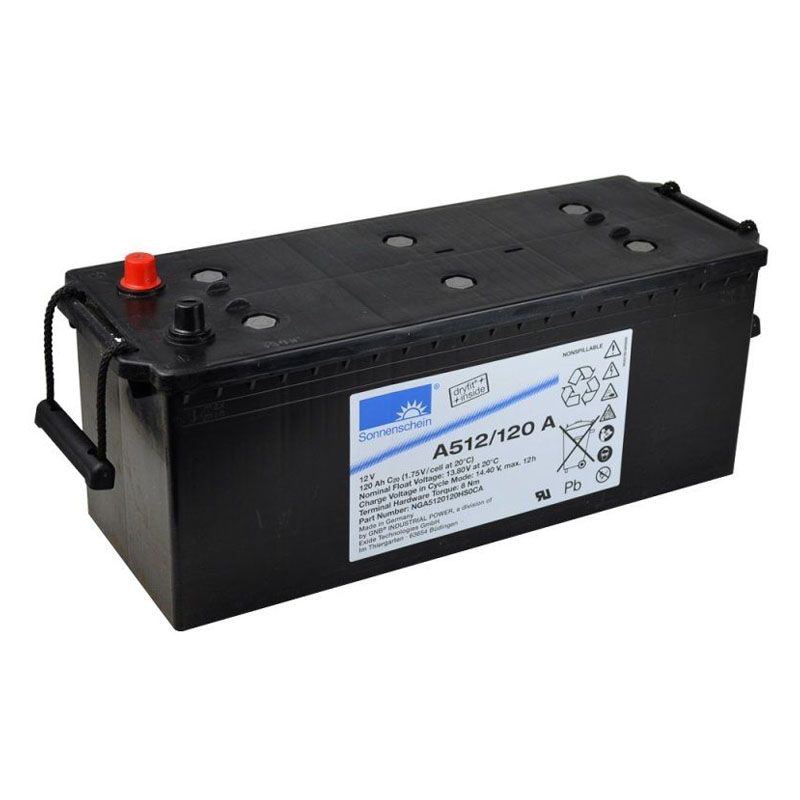 **Аккумулятор Sonnenschein A512/120 A (12V / 120Ah)**Свинцово-кислотный аккумулятор Sonnenschein A512/120 A (ёмкость 120 Ач, напряжение 12 В) предназначен для эксплуатации в буферном и циклическом режимах. Использование технологии Dryfit даёт целый ряд преимуществ: повышенный срок службы (до 12 лет), снижена возможность протекания электролита (он загущен до желеобразного состояния), не требуется доливать воду (рекомбинация газов происходит внутри корпуса), устойчивость к внутренним коротким замыканиям и глубоким разрядам, работа в широком диапазоне температур. Корпус выполнен из неокисляемого долговечного пластика и полностью герметичен. Более подробную информацию можно получить в разделе «Документы». Дата производства аккумулятора Sonnenschein A512/120 A указана на крышке в виде символьного кода. Аккумуляторная батарея Sonnenschein A512/120 A имеет усовершенствованную конструкцию легированных кальцием электродов из особо чистого свинца, что обеспечивает продолжительный срок службы и улучшенные разрядные характеристики. Технические характеристики АКБ Sonnenschein A512/120 A Номинальное напряжение 12 В Число элементов 6 Максимальный разрядный ток (25 °С) - А (5 с) Внутреннее сопротивление полностью заряженной батареи (25 °С) 5.1 мОм Саморазряд (при 20 °С) 3% в месяц Срок службы в буферном режиме 12 лет Циклический режим (2,42 В) Максимальный зарядный ток 42 А Температурная компенсация - мВ/эл°С Буферный режим (2,275 В) Температурная компенсация - мВ/эл°С Диапазон рабочих температур Оптимальная рабочая температура 20–25 °С Разряд -20 °С ~ 40 °С Заряд -20 °С ~ 40 °С Хранение -20 °С ~ 40 °С Конструкция аккумулятора Sonnenschein A512/120 A Компонент Материал Положительная пластина Диоксид свинца Отрицательная пластина Свинец Корпус и крышка Синтетическая смола ABS Клапан предохранительный Каучук Клеммы Медь Сепаратор Стекловолокно Электролит Серная кислота Особенности аккумулятора Sonnenschein A512/120 A Низкий саморазряд — менее 3% в месяц Технология Dryfit — желеобразный электролит Прочный корпус с клапаном избыточного давления Работа в циклическом и буферном режимах Срок службы до 12 лет Применение аккумулятора Sonnenschein A512/120 A Источники бесперебойного питания Телекомуникации Сотовая и фиксированная связь Объекты производства и распределения электроэнергии Аварийное освещение Разряд постоянным током, А (при 20 °С) АКБ Sonnenschein A512/120 A Конечное напряжение, В/эл. 5 мин 10 мин 15 мин 30 мин 1 ч 2 ч 3 ч 5 ч 8 ч 10 ч 1.60 409 267 205 124 74.7 43.3 30.2 19.2 12.8 10.5 1.65 387 260 201 122 74 43.1 30.1 19.2 12.8 10.5 1.70 367 249 196 119 73.1 42.7 29.9 19.2 12.8 10.5 1.75 330 235 188 116 71.6 41.9 29.5 19 12.6 10.5 1.80 293 221 178 112 69.5 40.9 28.9 18.6 12.3 10.2 1.85 257 201 162 104 65.5 39.3 27.8 18.1 11.9 9.8 Разряд постоянной мощностью, Вт (при 20°С) АКБ Sonnenschein A512/120 A Конечное напряжение, В/эл. 3 мин 5 мин 10 мин 15 мин 20 мин 30 мин 45 мин 1 ч 1.5 ч 1.60 5135 4156 2812 2276 1906 1403 1032 852 646 1.65 4847 4002 2761 2246 1883 1387 1022 843 640 1.70 4536 3800 2690 2201 1849 1365 1008 830 632 1.75 4237 3552 2627 2134 1800 1334 989 815 622 1.80 3763 3276 2543 2027 1720 1285 966 794 608 1.85 3350 2862 2300 1895 1583 1200 938 757 583 Общее описание Свинцово-кислотный аккумулятор Sonnenschein A512/120 A производится в Европе и обладает повышенными разрядными характеристиками. Его корпус изготовлен таким образом, чтобы обеспечить максимальную энергоёмкость при минимальной площади основания. Удобные габариты позволяют использовать меньше соединительных кабелей, за счёт чего сильно упрощается и удешевляется обслуживание таких батарей. Отличительной особенностью данного аккумулятора является использование технологии dryfit — элек