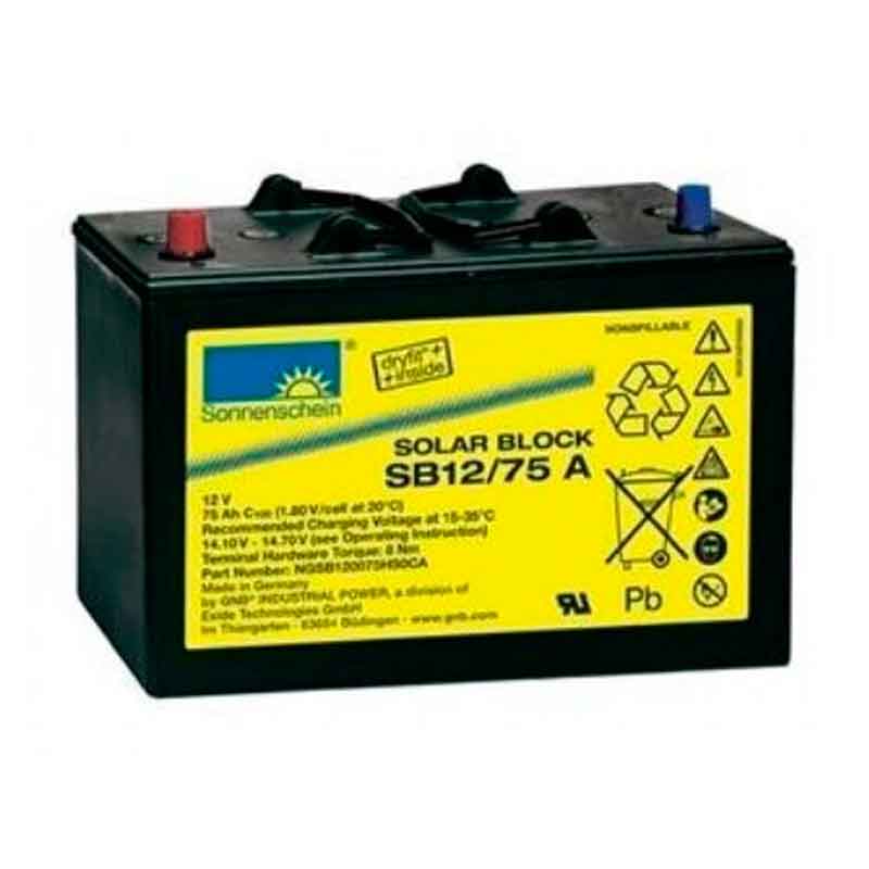 **Аккумулятор Sonnenschein SB 12/100 А (12V / 100Ah)**Свинцово-кислотный аккумулятор Sonnenschein Solar Block SB 12/100 А (ёмкость 100 Ач, напряжение 12 В) разработан для преобразования солнечной энергии, он также используется для небольших систем автономного электроснабжения, телекоммуникациях, источниках бесперебойного питания, нефтегазовой промышленности. Циклический ресурс составляет 800 циклов заряд-разряд. Корпус выполнен из прочного ABS-пластика и надёжно герметизирован. Внутри Sonnenschein Solar Block SB 12/100 А поддерживается давление, необходимое для рекомбинации газов, благодаря этому обслуживание батареи не требуется. Электролит находится в желеобразном состоянии (технология Dryfit), это повышает устойчивость аккумулятора к воздействию температур и глубоких разрядов. Дата производства аккумулятора Sonnenschein Solar Block SB 12/100 А указана на крышке в виде символьного кода. Технические характеристики АКБ Sonnenschein Solar Block SB 12/100 А Номинальное напряжение 12 В Число элементов 6 Максимальный разрядный ток (25 °С) - А (5 с) Внутреннее сопротивление полностью заряженной батареи (25 °С) - мОм Саморазряд (при 20 °С) 3% в месяц Срок службы в циклическом режиме 800 циклов Циклический режим (2,42 В) Максимальный зарядный ток - А Температурная компенсация - мВ/эл°С Буферный режим (2,275 В) Температурная компенсация - мВ/эл°С Диапазон рабочих температур Оптимальная рабочая температура +20–25 °С Разряд -20 °С ~ 40 °С Заряд -20 °С ~ 40 °С Хранение -20 °С ~ 40 °С Конструкция аккумулятора Sonnenschein Solar Block SB 12/100 А Компонент Материал Положительная пластина Диоксид свинца Отрицательная пластина Свинец Корпус и крышка Синтетическая смола ABS Клапан предохранительный Каучук Клеммы Медь Сепаратор Стекловолокно Электролит Серная кислота Особенности аккумулятора Sonnenschein Solar Block SB 12/100 А Низкий саморазряд — менее 3% в месяц Технология Dryfit — желеобразный электролит Прочный корпус с клапаном избыточного давления Работа в циклическом и буферном режимах Область применения аккумулятора Sonnenschein Solar Block SB 12/100 А ИБП Телекоммуникации Нефть и газ Охранные системы Общее описание Свинцово-кислотный аккумулятор Sonnenschein Solar Block SB 12/100 А производится в Европе и обладает повышенными разрядными характеристиками. Его корпус изготовлен таким образом, чтобы обеспечить максимальную энергоёмкость при минимальной площади основания. Удобные габариты позволяют использовать меньше соединительных кабелей, за счёт чего сильно упрощается и удешевляется обслуживание таких батарей. Отличительной особенностью данного аккумулятора является использование технологии dryfit — электролит загущен до состояния геля, это повышает его устойчивость к глубоким разрядам и перепадам температур. Sonnenschein Solar Block SB 12/100 А предназначен для работы в буферном режиме, но его можно эксплуатировать и в циклическом. Высокие разрядные токи и большая плотность энергии делают этот аккумулятор отличным решением для ИБП и других ответственных систем. Корпус из полипропилена полностью герметичен, разлив электролита без повреждений аккумулятора невозможен, а его обслуживание не требуется на протяжении всего срока службы. На крышке располагается клапан избыточного давления, он предназначен для выбросов избытка газов в атмосферу. Внутри аккумулятора поддерживается давление на 0,15 бар выше атмосферного, из-за этого стенки батареи могут быть немного вспучены (до 4 мм), это не является п