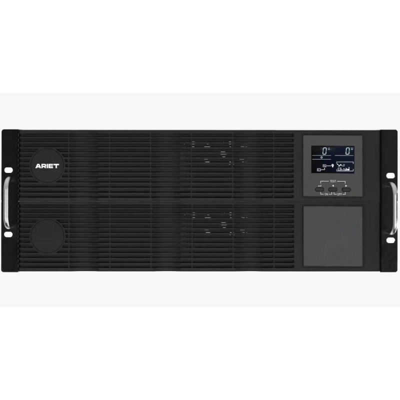 ИБП ARIET T6Krs построен на онлайн-технологии двойного преобразования, что гарантирует чистое и стабильное электропитание независимо от качества входной сети. Широкий диапазон входного напряжения и DSP-управление обеспечивают высокую надёжность и быструю реакцию на изменения нагрузки. Встроенная технология PFC с входным коэффициентом мощности более 99 % повышает энергоэффективность. Поддерживаются функции холодного запуска, защиты от перенапряжений и информативный ЖК/LED-дисплей для контроля состояния. ИБП совместим с внешними батарейными кабинетами ARIET EBM6-10TKrs (32×12 В 9 А·ч), что позволяет значительно увеличить время автономной работы.