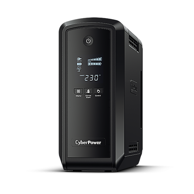 CyberPower CP900EPFCLCD - эта серия ИБП CyberPower с чистым выходным синусоидальным сигналом защищает компьютерные системы среднего и высокого класса, серверы и сетевое оборудование, в котором применяются обычные блоки питания и блоки питания с активным корректором мощности (PFC). Благодаря технологии GreenPower UPS, повышающей производительность и минимизирующей потребление энергии, пользователи могут значительно снизить расходы на электроэнергию по сравнению с обычными ИБП. ИБП этой серии с автоматическим регулированием напряжения (AVR) обеспечивает постоянное и безопасное питание подключенного оборудования. Оснащенны защитой линии передачи данных, что предохраняет телефонное, сетевое и другое оборудование связи от вредных импульсов, шумов и прочих нарушений. Пользователи, переключая режимы ЖК-дисплея, могут получить доступ к информации о состояниии электроснабжения, уровне заряда батареи и настроить дополнительные параметры, в том числе предупреждения о потенциальных проблемах с электропитанием и провести самотестирование ИБП.