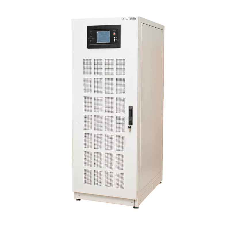 **ИБП Штиль SM060/10**Параметр SM060/10 Выходная мощность, кВА/кВт 60/54 Топология on-line (с двойным преобразованием) Силовой модуль, кВА/кВт 10/9 Исполнение напольное (Tower) Тип ключей IGBT-транзисторы Входные характеристики Тип входной сети трехфазная пятипроводная с общей нейтралью (L1, L2, L3, N, PE) Номинальное входное напряжение, В 380/400/415 Диапазон входного напряжения, В 304-478 при 100% нагрузке, 228-304 с ограничением выходной мощности Предельный диапазон входного напряжения, В 228-478 Диапазон входного напряжения в режиме байпас, В отрицательный диапазон выбора: -10%, -15%, -20%, -30%, -40%, положительный диапазон выбора: +10%, +15%, +20%, +25% (по умолчанию: -20% и +20%) Номинальная входная частота, Гц 50/60 Диапазон входной частоты, Гц 40-70 Входной коэффициент мощности 0,99 Номинальный входной ток (при максимальной нагрузке), А 103 Плавный пуск да Выходные характеристики Форма выходного сигнала синусоида Выходной коэффициент мощности 0,9 Номинальное выходное напряжение, В 380/400/415 (трехфазное с общей нейтралью) Точность поддержания выходного напряжения ±1,5 (0…100% несбалансированная нагрузка) Номинальная выходная частота, Гц 50/60 Точность поддержания выходной частоты ±0,1% Максимальный выходной ток, А 91 Коэффициент нелинейных искажений, % <,1,5 (линейная нагрузка), <,5 (нелинейная нагрузка) Переходная характеристика <,5% для ступенчатой нагрузки (20% - 80% - 20%) Время восстановления после переходного процесса <, 30 мс для ступенчатой нагрузки (0% - 100% - 0%) Крест-фактор 3:1 Перегрузочная способность при работе в режиме on-line (уровень нагрузки - в процентах от номинального значения) 110% - в течение 1 ч, 125% - в течение 10 мин, 150% - в течение 1 мин, более 150% - в течение 200 мс Перегрузочная способность при работе в режиме байпас байпас (уровень нагрузки - в процентах от номинального значения) до 125% - длительно, 125% - 130% - в течение 1 ч, 130% - 150% - в течение 6 мин, >,1000% - в течение 100 мс КПД при работе в режиме on-line, % >,95 КПД при работе в режиме байпас (или в режиме ECO), % 99 КПД при работе в автономном режиме (питание от АБ), % 95 Время переключения в автономный режим из режима on-line, мс 0 Время переключения в режим «on-line» из режима ECO, мс переключение с синхронизацией: 1 Внешние АБ Тип АБ герметичные, необслуживаемые, свинцово-кислотные Номинальное напряжение АБ, В 480 (±240 В), диапазон одного плеча: 198~288 Напряжение буферного заряда АБ, В/эл 2,25 (диапазон выбора: 2,2 – 2,35) Напряжение выравнивания заряда АБ, В/эл 2,4 (диапазон выбора: 2,3 – 2,45) Конечное напряжение разряда АБ, В/эл 1,65 (диапазон выбора: 1,6 – 1,75) с током разряда 0,6 С 1,75 (диапазон выбора: 1,65 – 1,8) с током разряда 0,15 С конечное напряжение разряда автоматически корректируется в зависимости от времени автономной работы Термокомпенсация заряда АБ настраивается в пределах от 0 до 5 мВ/0С/эл Номинальная мощность встроенного ЗУ 10% от мощности ИБП (диапазон выбора: 1-20%) Номинальный ток по цепи АБ, А 142 Количество внешних АБ 12В, шт. 40 Емкость внешних АБ, Ач зависит от требуемого времени автономной работы АБ Время заряда внешних АБ, ч Холодный старт (запуск в автономном режиме во время отключения электроэнергии) в базовой комплектации Функционал управления АБ тест емкости, защита от глубокого разряда (LVD), термокомпенсация заряда (опция), контроль АБ по «средней» точке (опция) Срок службы от 5 до 12 лет (в зависимости от условий эксплуатации) Панель управления и интерфейсы ЖК-дисплей сенсорный, окно информации о системе, окно меню
