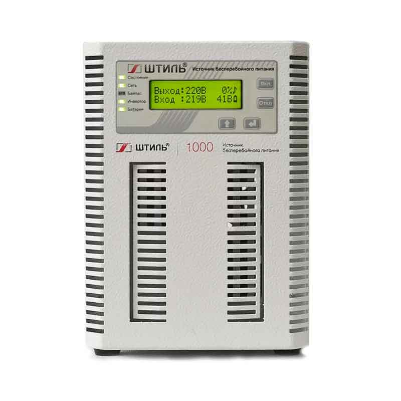 **ИБП Штиль ST1101SL (1 кВА / 0.9 кВт)**Отечественный однофазный ИБП ST1101SL в башенном исполнении выпускается номинальной мощностью 1000ВА/900Вт. Коэффициент мощности (PF) составляет 0,9. Его можно установить на пол. Внутри источника бесперебойного питания установлено 3 свинцово-кислотных аккумулятора ёмкостью 9 Ач каждый. ИБП работает по технологии On-line с двойным преобразованием и выдаёт на выходе чистый синус. Это позволяет подключать к нему оборудование, чувствительное к электрическим помехам. На передней панели ST1101SL расположен ЖК дисплей. Он показывает информацию о состоянии оборудования, ошибках и аварийных ситуациях. При подключении плат расширения интерфейса можно дистанционно управлять источником бесперебойного питания. Специальное ПО позволяет оперативно реагировать на нештатные ситуации, следить за состоянием каждого аккумулятора, регулировать нагрузку. К ST1101SL нельзя подключать дополнительные батарейные блоки. Особенности ИБП Штиль ST1101SL: Мгновенное переключение на аккумуляторы Чистый синус на выходе Работа в широком диапазоне входного напряжения Высокий коэффициент мощности, Коэффициент нелинейных искажений тока менее 1% ИБП Штиль ST1101SL подходит для: Серверов и ЦОД Телекоммуникации Медицинского оборудования Производства Охранных и пожарных систем Технические характеристики Штиль ST1101SL: Общие Полная мощность, кВА 1 Активная мощность, кВт 0.9 Форм-фактор напольный Топология on-line (с двойным преобразованием) Режимы работы on-line, автономный, ECO Страна производитель Россия Вход Тип входной сети однофазная трехпроводная (L, N, PE) Совместимость с генератором да Номинальное входное напряжение, В 220 Рабочий диапазон входного напряжения, В 175-295 при нагрузке 100%, 155-295 при нагрузке 75%, 120-295 при нагрузке 50% Предельный диапазон входного напряжения, В 90-295 Допустимое отклонение верхней границы входного напряжения в режиме ECO и для электронного байпаса, % +5, +10, +15, +20, +25 (значение по умолчанию: +20) Допустимое отклонение нижней границы входного напряжения в режиме ECO и для электронного байпаса, % -5, -10, -15, -20, -25 (значение по умолчанию: -20) Номинальная входная частота, Гц 50 Допустимый диапазон входной частоты, Гц 45-65 Входной коэффициент мощности 0,99 Максимальный входной ток, А 6 Потребляемая мощность в режиме холостого хода, Вт 25 Плавный пуск да Выход Тип выходного напряжения однофазные Номинальное выходное напряжение, В 220 Диапазон настройки выходного напряжения, В 220-240 Точность стабилизации выходного напряжения, % ±2 Форма выходного напряжения чистая синусоида Выходной коэффициент мощности 0,9 Номинальная выходная частота, Гц 50/60 Точность стабилизации выходной частоты (при работе от АБ), % ±0,2 Максимальный выходной ток, А 4,5 Коэффициент нелинейных искажений выходного напряжения, % <,2,5 при линейной нагрузке, <,4 при нелинейной нагрузке Крест-фактор 3:1 Перегрузочная способность (при работе в режиме on-line или от батарей) 101-105% – без ограничения по времени, 105-130% – в течение 60 с, 130-150% – в течение 1 с, более 150% – в течение 0,2 с (с последующим переключением на байпас) Перегрузочная способность (при работе через байпас или в режиме ECO) 200% – в течение 40 с КПД в режиме on-line, % 95 КПД при работе через байпас или в режиме ECO, % 99 КПД в автономном режиме, % 86 Время переключения в автономный режим из режима on-line, мс 0 Время переключения в автономный режим из режима ECO, мс 7 Аккумуляторы Нал
