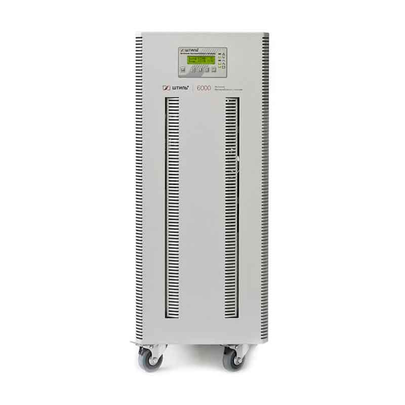 **ИБП Штиль ST1106SL (6 кВА / 5.4 кВт)**Отечественный однофазный ИБП ST1106SL в башенном исполнении выпускается номинальной мощностью 6кВА/5.4кВт. Коэффициент мощности (PF) составляет 0,9. Его можно установить на пол. Внутри источника бесперебойного питания установлено 16 свинцово-кислотных аккумуляторов ёмкостью 9 Ач каждый. ИБП работает по технологии On-line с двойным преобразованием и выдаёт на выходе чистый синус. Это позволяет подключать к нему оборудование, чувствительное к электрическим помехам. На передней панели ST1106SL расположен ЖК дисплей. Он показывает информацию о состоянии оборудования, ошибках и аварийных ситуациях. При подключении плат расширения интерфейса можно дистанционно управлять источником бесперебойного питания. Специальное ПО позволяет оперативно реагировать на нештатные ситуации, следить за состоянием каждого аккумулятора, регулировать нагрузку. К ST1106SL можно подключать дополнительные батарейные блоки Штиль BMT-192-09-SL, BMT-192-18-SL, BMT-192-27-SL и BMT-192-36-SL. Особенности ИБП Штиль ST1106SL: Мгновенное переключение на аккумуляторы Чистый синус на выходе Работа в широком диапазоне входного напряжения Высокий коэффициент мощности, Коэффициент нелинейных искажений тока менее 1% ИБП Штиль ST1106SL подходит для: Серверов и ЦОД Телекоммуникации Медицинского оборудования Производства Охранных и пожарных систем Технические характеристики Штиль ST1106SL: Общие Полная мощность, кВА 6 Активная мощность, кВт 5.4 Форм-фактор напольный Топология on-line (с двойным преобразованием) Режимы работы on-line, автономный, ECO Страна производитель Россия Вход Тип входной сети однофазная трехпроводная (L, N, PE) Совместимость с генератором да Номинальное входное напряжение, В 220 Рабочий диапазон входного напряжения, В 165-310 при нагрузке 100%, 135-310 при нагрузке 80%, 90-310 при нагрузке 60% Предельный диапазон входного напряжения, В 90-310 Допустимое отклонение верхней границы входного напряжения в режиме ECO и для электронного байпаса, % +5, +10, +15, +20, +25 (значение по умолчанию: +20) Допустимое отклонение нижней границы входного напряжения в режиме ECO и для электронного байпаса, % -5, -10, -15, -20, -25 (значение по умолчанию: -20) Номинальная входная частота, Гц 50 Допустимый диапазон входной частоты, Гц 43-57 Входной коэффициент мощности 0,99 Максимальный входной ток, А 38 Потребляемая мощность в режиме холостого хода, Вт - Плавный пуск да Выход Тип выходного напряжения однофазные Номинальное выходное напряжение, В 220 Диапазон настройки выходного напряжения, В 220-240 Точность стабилизации выходного напряжения, % ±2 Форма выходного напряжения чистая синусоида Выходной коэффициент мощности 0,9 Номинальная выходная частота, Гц при работе от сети – соответствует частоте сети при работе от АБ – устанавливается пользователем: 50/60 (по умолчанию – 50) Точность стабилизации выходной частоты (при работе от АБ), % ±0,1 Максимальный выходной ток, А 27 Коэффициент нелинейных искажений выходного напряжения, % <,2 при линейной нагрузке, <,4 при нелинейной нагрузке Крест-фактор 3:1 Перегрузочная способность (при работе в режиме on-line или от батарей) менее 105% – не ограничено, 105-150% – не менее 5 с, более 150% – не более 5 с (с последующим переключением на байпас) Перегрузочная способность (при работе через байпас или в режиме ECO) - КПД в режиме on-line, % 95 КПД при работе через байпас или в режиме ECO, % 99 КПД в автономном режиме, % 94 Время переключения в ав