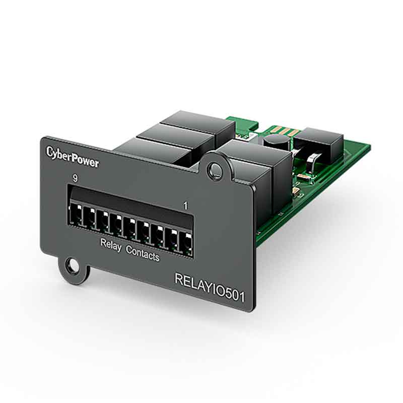 **Карта сухих контактов RELAYIO501 (DB9)**Карта сухих контактов RELAYIO501 (DB9) подключается в специальный слот ИБП. Она отслеживает состояние источника бесперебойного питания и выдаёт предупреждения о проблемах с электропитанием, перегрузки, перегрев и другие отказы источника бесперебойного питания. При помощи RELAYIO501 (DB9) можно удалённо отключить оборудование, как сам ИБП, так и подключенные к нему устройства: генераторы, освещение, аварийные сигналы. Карта может оставаться включённой даже во время горячей замены элементов источника бесперебойного питания.Преимущества:- Надёжность и качество от производителя- Категория: Источники бесперебойного питанияДоставка по Казахстану. Гарантия и сервисное обслуживание.Нужна консультация — наши специалисты помогут подобрать оптимальную модель.