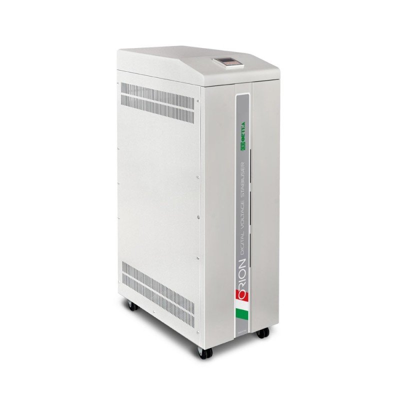 Трехфазные стабилизаторы серии Orion мощностью до 135 кВа могут подключаться к электросети коттеджей, офисов, небольших производственных участков. Изделия имеют характеристики, аналогичные серии Vega. Orion обеспечивает независимую стабилизацию напряжения по каждой фазе. Устройство оснащено уникальным дисплеем, отражающим информацию о более чем 150 параметрах состояния электросети. Компактный корпус на колесах обеспечивает мобильность агрегата и удобство его монтажа.