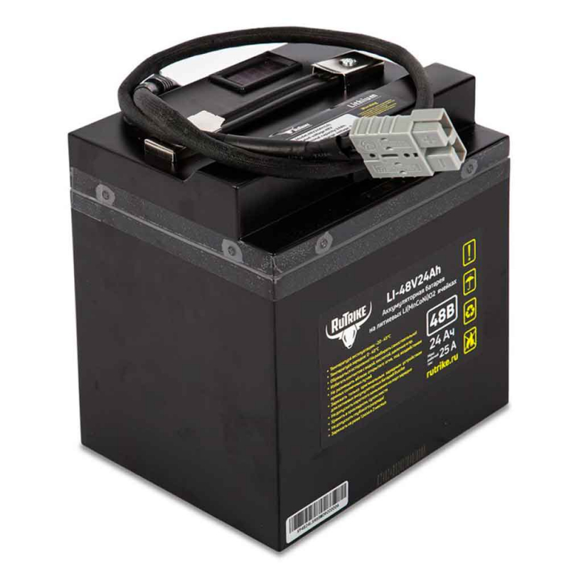 **Аккумулятор тяговый RuTrike (18650 MnCoNi) 48V24A/H (48V / Ah C5) Li-Ion (MnCoNi)**Литиевый тяговый аккумулятор RuTrike (18650 MnCoNi) 48V24A/H изготавливается напряжением 48 В и ёмкостью (C20) 24 Ач по технологии MnCoNi. Это обеспечивает батарее ряд преимуществ в сравнении со стандартными свинцово-кислотными АКБ. Срок службы в буферном режиме превышает 5 лет, в циклическом достигает 4000 циклов, что примерно в 3 раза выше аналогов. RuTrike (18650 MnCoNi) 48V24A/H не имеет эффекта памяти: батарею можно заряжать при любой глубине разряда. Сам процесс заряда до 100% занимает не более 2 часов, при этом аккумулятор не нагревается и не выделяет вредных веществ. Батарея обладает малым весом, что существенно упрощает монтаж батареи. Тяговый аккумулятор RuTrike (18650 MnCoNi) 48V24A/H поставляется со встроенным блоком управления (Battery Management System), он регулирует параметры заряда и разряда, следит за температурой и защищает АКБ. Литиевая батарея предназначена для высоких нагрузок и обладает повышенной токоотдачей. Она подходит для любой поломоечной и уборочной техники от любых производителей, погрузчиков, автомобилей и мотоциклов с электрическими двигателями. Корпус выполнен из металла и надёжно герметизирован, клеммы выполнены в виде силового разъёма. Особенности Rutrike (18650 MnCoNi) 48V24A/H Технология MnCoNi Быстро заряжается Без эффекта памяти Повышенная токоотдача Не выделяют вредных веществ при зарядке Применение Rutrike (18650 MnCoNi) 48V24A/H Электромобили Поломоечные машины Электромотоциклы Уборочная техника Погрузочные машины Технические характеристики Rutrike (18650 MnCoNi) 48V24A/H Тип аккумуляторных батарей, технология Тяговый. Литиевый, класс защиты от воды IP67 Ёмкость за 10-20 часов разряда (С10-С20) A/h 24 Технология Li(NiCoMn)O2 Рабочее напряжение (V) 48 Напряжение заряда в циклическом режиме (V) 58.8 Габариты (мм) Д x Ш x В 183*156*203 Срок службы в буферном режиме, лет 7 Клеммы Силовой разъём Вес (кг) 5 Диапазон рабочей температуры от -15°С до +70°С Срок службы в циклическом режиме: заряд/разряд Не менее 1000 циклов Используемые элементы DMEGC INR18650-26E BMS плата есть Напряжение отсечки (V) 48 Гарантия 12 месяцевХарактеристики:- Характеристики:Напряжение, В:48- Характеристики:Технология:Li-Ion (MnCoNi)- Характеристики:Тип аккумулятора:Тяговый- Характеристики:Длина, мм.:183- Характеристики:Ширина, мм.:156- Характеристики:Высота, мм.:203- Характеристики:Вес, кг.:5- Характеристики:Емкость (C20), Ач:24Преимущества:- Надёжность и качество от производителя- Категория: Тяговые аккумуляторы|Тяговые аккумуляторы>RuTrikeДоставка по Казахстану. Гарантия и сервисное обслуживание.Нужна консультация — наши специалисты помогут подобрать оптимальную модель.