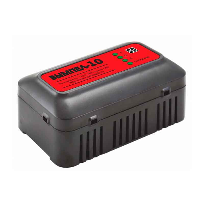 **Зарядное устройство Вымпел-10**Автоматическое зарядное устройство Вымпел-10 предназначено для зарядки 3,7 В литий-ионных и литий-полимерных аккумуляторов. ЗУ использует алгоритм заряда по принципу импульсного отключения тока и снабжено защитой от перегрева. На передней панели расположен светодиод для отслеживания состояния аккумуляторов. Регулировка тока и напряжения на Вымпел-10 отсутствует. Во избежание перегрева внутри зарядного устройства установлено пассивное охлаждение в виде радиатора. Также Вымпел-10 совместим с блоком питания Вымпел-04. Более подробную информацию о схеме подключения, режимах эксплуатации и характеристиках можно получить во вкладке «Документы». Особенности ЗУ Вымпел-10: Электронная защита от перегрева Три канала заряда Пассивное охлаждение Применение ЗУ Вымпел-10: Для литиевых АКБ Заряд и выравнивание аккумуляторов Технические характеристики зарядного устройства Вымпел-10 Алгоритм заряда импульсное отключение Номинальное напряжение АКБ 3,7 В Максимальный зарядный ток, А 1,2 Регулировка тока нет Регулировка напряжения нет Напряжение заряда, В 4,2 Индикатор заряда светодиод Охлаждение пассивное (радиатор) Электронная защита от короткого замыкания, перегрева, переполюсовки Габариты, мм 115х67х50 Вес, кг 0,2Преимущества:- Надёжность и качество от производителя- Категория: Зарядные устройства|Зарядные устройства>Зарядные устройства (ЗУ) ВымпелДоставка по Казахстану. Гарантия и сервисное обслуживание.Нужна консультация — наши специалисты помогут подобрать оптимальную модель.